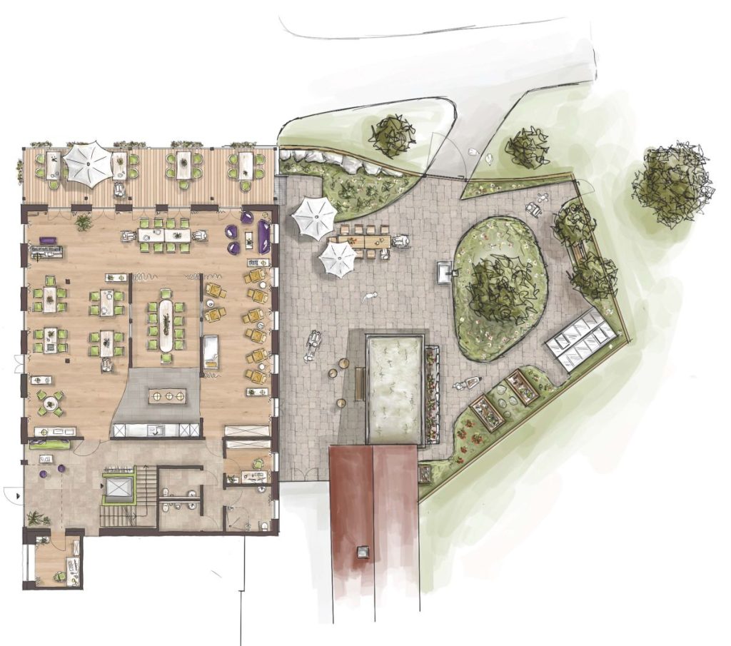 Bei schönem Wetter laden die beiden Terrassen und die Gartenanlage, die nach und nach erweitert wird, zum Verweilen ein. Alle Wege sind mit jeglichen Bewegungshilfen begehbar.